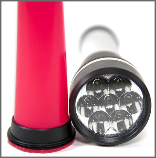 - 7 Powerful LED bulbs creating a 56 lumen 5 mm output with a polycarbonate optical reflector